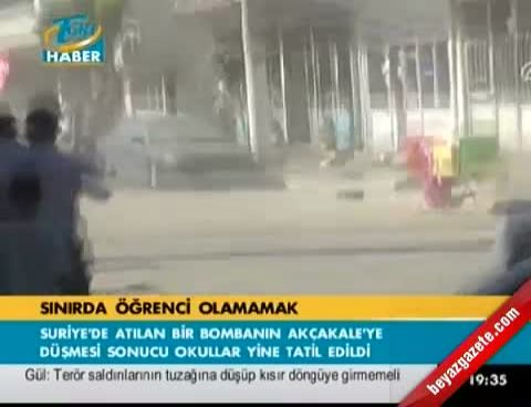 Suriye ordusu kaybettiği Tellebyat Sınır Kapısı'nı geri almak için top atışlarına devam ediyor. Muhaliflerin direnişi sayesinde 10 gündür bir sonuç alamayan Suriye ordusu tarafından atılan toplardan biri, geçtiğimiz günlerde Akçakale Kaymakamlığı yanındaki bir eve düşmüştü. Daha öncede 3 kişi şarapnel parçalarıyla yaralanmış ve sınırdaki bir çok ev isabet almıştı. İlk günlerde tatil edilen 14 okul tekrar açılmıştı ancak bugün yeniden tatil edilme kararı alındı.