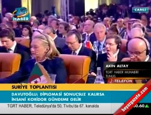 Tunus 'ta bugün yapılan “Suriye Dostları Grubu” zirvesinde yaptığı konuşmada Davutoğlu, 4 Şubat 'ta BM Güvenlik Konseyi 'nde Suriye halkına desteği içeren kararnamenin, demir paletler altında ezilen halkın yardım çığlıklarına rağmen veto edilmesinin herkeste büyük hayal kırıklığı yaşattığına vurgu yaparak, “Bugün burada 'uluslararası kamuoyu Esed rejimin şiddetine karşı yetersiz ve duyarsız ' şeklindeki yanlış imajı düzeltmek için büyük bir fırsata sahibiz.” dedi.