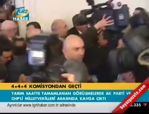 CHP milletvekillerinin salona girmemesi nedeniyle tartışma büyüdü. Bu arada, AK Parti milletvekilleri ve Komisyon Başkanı Nabi Avcı, kameramanların dışarıya çıkmasını istedi. Toplantı salonun girişinde bekleyen CHP'li milletvekilleri çıkmalarını engelleyince, bazı AK Parti milletvekilleri kameramanları iterek salondan çıktı. Yumruklaşma sırasında, CHP Sinop Milletvekili Engin Altay, dengesini kaybederek yere düştü. Altay'ın yerde, AK Parti milletvekilleri tarafından tekmelendiği iddia edildi. Bazı AK Parti milletvekillerinin kavga sırasında, ''12 saat kitap okursanız böyle olur'' dediği duyuldu.