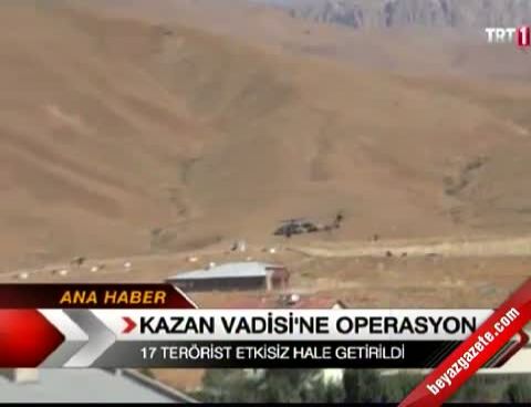 21 Ekim 2012 Pazar günü yayınlandı Hakkari'nin Kazan Vadisi'nde yürütülen operasyonun dünkü bölümünde 20 teröristin etkisiz hale getirildiği belirtildi.Güvenlik güçlerinin, pazartesi günü Kazan Vadisi'nde başlattığı operasyonlarda hakim noktaları tuttukları ve bölgedeki bütün hareketliliği takip ettikleri kaydedildi.