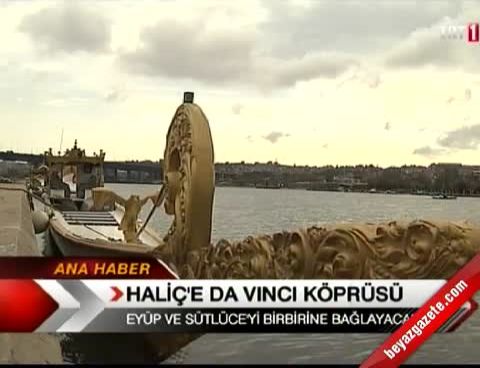 Başbakan Recep Tayyip Erdoğan'ın "Haliç'e Boğaz'dan su verme" töreninde ilk kez duyurduğu "Leonardo Da Vinci Köprüsü Projesi" uluslararası bir gönüllü grubu tarafından Büyükşehir Belediyesi'nin hiçbir bedel ödemesine gerek kalmadan ücretsiz olarak hayata geçirilecek.
