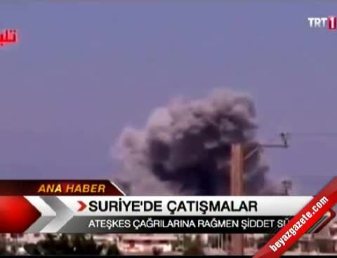Harim kasabasında gün boyu çatışmalar yaşandığı ve dumanların yükseldiği, Hatay'ın Reyhanlı ilçesine bağlı Beşaslan köyünden duyulduğu bildirildi.