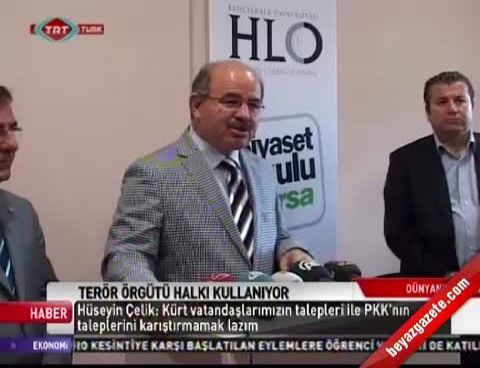 Kürt halkı ile PKK'nın gündeminin farklı olduğunun altını çizen Hüseyin Çelik, şöyle devam etti: “İki şeyi birbirine karıştırmamak lazım. Kürt vatandaşlarımızın makul, meşru ve mantıklı taleplerinde bu güne kadar hükümetimiz hep olumlu cevap verdi. Birçok şey yapıldı, birçok şey yapılıyor ve bir tek şey yapılacak. Kürt vatandaşlarımızın haklı, makul, meşru ve mantıklı talepleri ile terör örgütünün taleplerini birbirine karıştırmamak lazım. Kürk vatandaşlarımızın gündemi ile terör örgütünün gündemi kesinlikle aynı şey değil, bir taraftan demokratikleşme devam edecek."