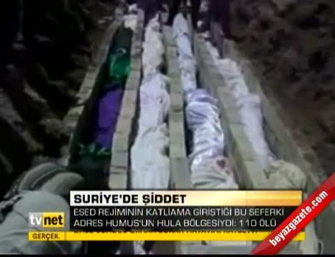 Suriye'deki katliamlara bir yenisi Humus'un Houla bölgesinde eklendi. Muhalifler Esed yanlılarının gerçekleştirdiği katliamda ölenlerin çoğunluğunu çocuk ve kadınların oluşturduğunu belirtti.