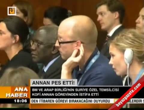 Bugün Cenevre’de aniden yapılan basın toplantısında konuşan BM ve Arap Birliği Suriye Özel Temsilcisi Kofi Annan, görevini 31 Ağustos tarihi itibari ile bıraktığını belirterek, “Suriye halkının çaresizce eyleme ihtiyacı varken, Güvenlik Konseyi’nde hâlâ birileri suçlanıyor ve isim takılıyor. Benim ya da bir başkasının Suriye hükümetini ya da muhalefeti siyasi süreçle alakalı adım atmaya zorlaması imkânsız. Özel temsilci olarak barışı asıl taraflardan, Güvenlik Konseyi’nden ya da uluslararası toplumdan fazla isteyemem” dedi.