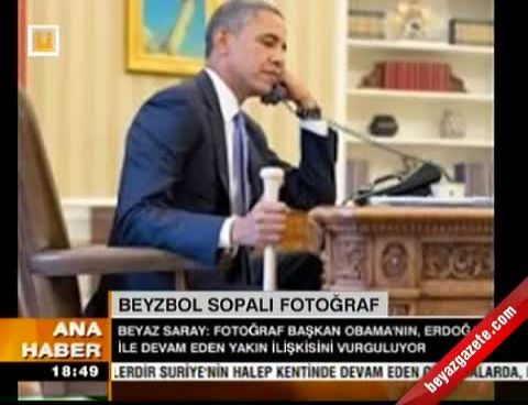 Başkan Obama'nın Başbakan Recep Tayyip Erdoğan'la telefonla görüştüğü sırada diğer eliyle de beyzbol sopasını tuttuğu görüldü