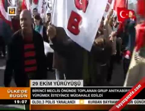 Bunun üzerine partililer, bariyerleri yıkarak ve üzerlerinden atlayarak tören alanına girdi. Bu sırada partililer ile polis ekipleri arasında arbede yaşandı.