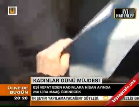 Aile ve Sosyal Politikalar Bakanlığı 'nın eşi vefat eden kadınlar için başlattığı maaş ödeme sisteminde sona gelindi. Başbakan Recep Tayyip Erdoğan 'ın talimatıyla ödenecek tutar 250 lira olarak tespit edildi. Eşi vefat eden kadınlara destek amacıyla başlatılan projede Türkiye genelinde 1,5 sene inceleme yapıldı. Hükümetin isteğiyle, Boğaziçi Üniversitesi 'nin yaptığı tespitlerde eşini kaybeden herhangi bir sosyal güvencesi olmayan hanımlara maaş önerisi çıktı. Önerinin görüşülmesinin ardından Başbakan Recep Tayyip Erdoğan her bir kadın için 250 lira maaş ödenmesi talimatı verdi.