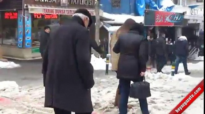 Buz pistine dönen kaldırımlarda Bursalılar zor anlar yaşadı