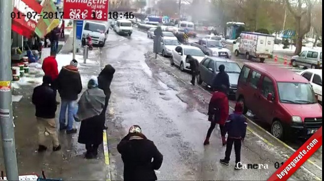 Karaman ' da vatandaşların yağan sulu kardan ıslanmamak için altına girdikleri bir iş yerine ait sundurmanın üzerine kar kütlesi düştü. Kar kütlesinin düşmesi ve vatandaşların kaçışmaları güvenlik kamerasına yansıdı.