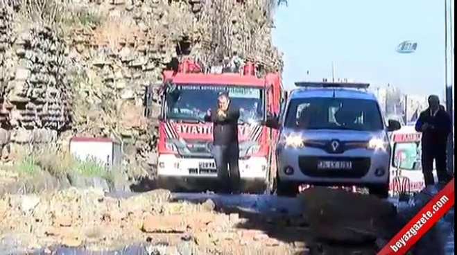 İstanbul Fatih ' te Sulukule Caddesi ' nde tarihi surların bir kısmı yola çöktü.