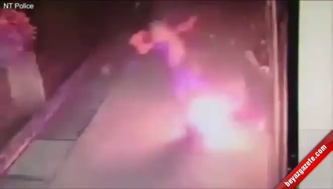 Daha sonra kibrit ile patlayıcı maddeyi tutuşturmak isteyen genç metrelece geriye savruluyor.