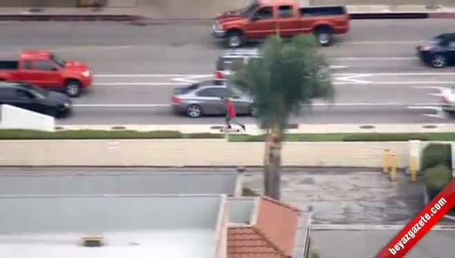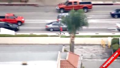 Hırsız araçla bir süre yol aldıktan sonra sıkışan trafikten dolayı kaza yaptı ve araçtan inerek kaçmaya başladı. Polis kamerasınca kaydedilen görüntülerde yanında bulunan kaykayı kaçtığı süre boyunca elinden bırakmayan acemi hırsız zaman zaman kaykayına binerek polisten kaçmaya çalıştı.
