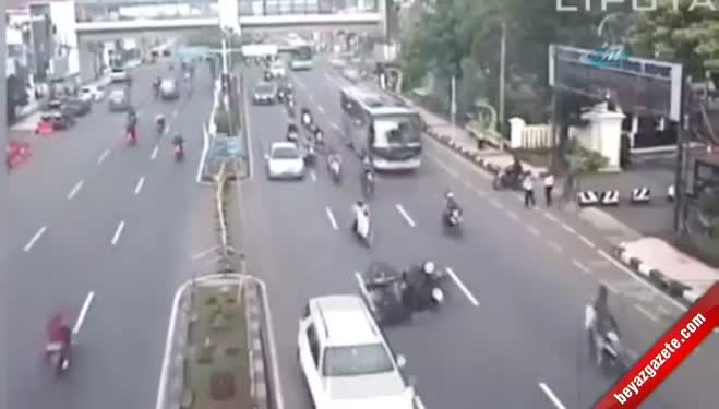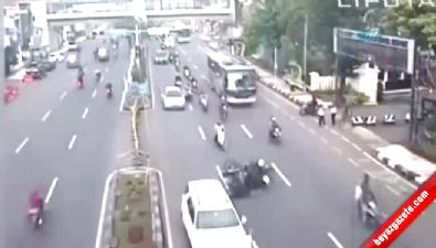 Endonezya ' nın Java kentinde yola çıkan motosiklet ortalığı birbirine kattı.
