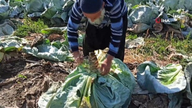 Tohumunu da kendi ürettiği, lezzeti ve aroması ile benzerlerine fark atan dev lahana yetiştiren Ali Rıza Dağlıoğlu, “Çoğu kimse, bu kadar büyük lahana yetiştiğine inanmıyor” dedi.