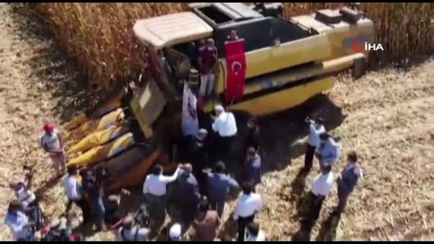 -Vali Karaloğlu’nun biçer döver makinasıyla mısır hasadı yapması