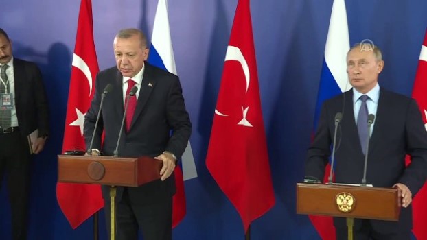 Erdoğan: "(Fırat'ın doğusu) Bu tacizler devam ettiği sürece bizim eli kolu bağlı durmamız mümkün değil" - MOSKOVA - Cumhurbaşkanı Erdoğan'ın açıklamasıMOSKOVA (AA) - Türkiye Cumhurbaşkanı Recep Tayyip Erdoğan, Rusya Devlet Başkanı Vladimir Putin'le görüşmesi sonrası ortak basın toplantısı düzenledi.