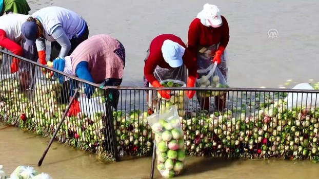 Turp üretiminin Türkiye'de sadece Kadirli'de olmadığını vurgulayan İspir, şöyle devam etti:"Hava şartları sert olduğunda diğer turp üreten Konya ve Ankara Beypazarı gibi yerlerde üretim duruyor. Bu nedenle Kadirli tek üretici konumuna geliyor. Bu da fiyatların iyi seviyelerde olmasını sağlıyor. Ancak bu sene bu olmadı. Bu bölgelerden de piyasaya turp çıkınca, ürünün tarladaki fiyatı geçen seneye oranla yarı yarıya düştü. Ayrıca turp sıcak havada çabuk bozulduğu için maliyet de verim kaybı da artıyor. Dönümüne 4 - 5 ton veren turp, bazen dönüme 2 tona kadar düşebiliyor. En önemlisi ise her bölgeden turp geldiği için fiyatlar da taban yapıyor." - Üreticiler şikayetçiTurp üreticisi Soner Topalhan da günlük 6 bin kişiye kazanç kapısı olan turp üretimini, Kadirli'nin "bacasız fabrikasına" benzeterek, üretim fazlalığının sektörü zora soktuğunu dile getirdi.Kış mevsiminde turpun insanlara ekmek kapısı olduğunu belirten Topalhan, "Gerek mazottaki artış nedeniyle nakliye fiyatlarının gerekse doların yükselmesi nedeniyle paketleme fiyatlarının yükselmesi, üreticinin girdilerini artırdı ve sektör şu an zararda. Birçok üreticinin ürünü tarlada kaldı. Mısır, buğday gibi ürünlerin de ekim zamanı gelmesi nedeniyle tarla sahipleri 'arazimizi boşaltın' deyince, ürünü sökmeden tarlaları sürmeye başladık." ifadelerini kullandı.Topalhan, bu sene turpun tarlada kilogram fiyatının 30 - 40 kuruş arası değiştiğine dikkati çekerek, "Geçen sene bu rakam 60 kuruştu. Bu yıl, geçen yılın masrafından 1 kat daha fazla masraf yaptık ama üründen bir o kadar zarar ettik. Bu ürün soğuğu sever. Havalar soğuk gitmeyince üretim fazla talep az oldu." değerlendirmesinde bulundu.