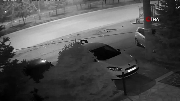 Ayrıca görüntülerde kaldırımda ilerleyen bir kişinin de otomobili fark ederek kaçmaya çalışması güvenlik kamerası tarafından an ve an kaydedildi.