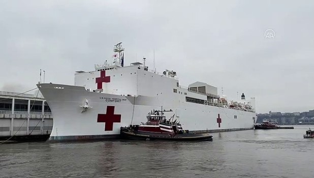 Cumartesi Virginia’dan hareket eden hastane gemisinin 1,000 yatak kapasitesi ile 24 saat içinde operasyonel hale gelerek, salgından dolayı yetersiz kalan New York 'taki hastaneleri rahatlatması bekleniyor.Hastanelerde yeni tip koronavirüs salgınına yakalananlar tedavi edilirken, USNS Comfort gemisinde, Kovid - 19’la bağlantısı olmayan diğer hastaların tedavi edileceği belirtiliyor.24 saat çalışacak hastane gemisinde 12 ameliyat odası bulunuyor, bin 277 personel görev yapıyor.USNS Comfort hastane gemisi 11 Eylül saldırılarından sonra da New York ’a gönderilmişti.ABD'de salgının en fazla etkisini hissettirdiği eyaletlerin başında gelen New York ’ta, Johns Hopkins Üniversitesinin paylaştığı son verilere göre, Kovid - 19'dan dolayı hayatını kaybedenlerin sayısı 1,026’yı bulurken vaka sayısı 60 bin 679'a çıktı.