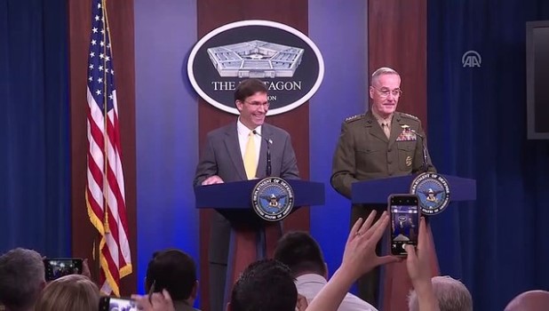 Bakan Esper, ABD Genelkurmay Başkanı Orgeneral Joseph Dunford ile Savunma Bakanlığında (Pentagon) ortak basın toplantısı düzenledi.