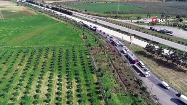 ( ADANA -DRONE)- Adana polisi kentin giriş çıkışlarında uygulama yaparak şehre gelen herkesin ateşini ölçüp, Adanalı olmayanlar kendi şehirlerine gönderildi- Otoyolda bütün araçlar durdurulunca uzun kuyruklar oluştu ADANA