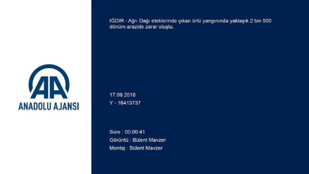 - Yangın çıkan alandan görüntülerAğrı Dağı'nda örtü yangını - Yangında yaklaşık 2 bin 500 dönüm arazi zarar gördüIĞDIR (AA) - Ağrı Dağı eteklerinde çıkan örtü yangınında yaklaşık 2 bin 500 dönüm arazide zarar oluştu.Ağrı Dağı eteklerinde henüz belirlenemeyen nedenle örtü yangını çıktı.Durumun yetkililere bildirilmesi üzerine bölgeye Iğdır Orman İşletme Müdürlüğü ve jandarma ekipleri sevk edildi.Arazi koşulları nedeniyle bölgeye itfaiye araçlarının ulaşamaması üzerine görevliler, toprak atarak alevlere müdahale etmeye çalıştı.Ekipler, yangını 160 hektarlık Büyük Ağrı Dağı ormanlık alanına ulaşmadan söndürdü. Yangında yaklaşık 2 bin 500 dönüm arazi zarar gördü. Iğdır Orman İşletme Müdürü Taner Tazegün, gazetecilere yaptığı açıklamada, yangının kontrol altına alındığını söyledi.