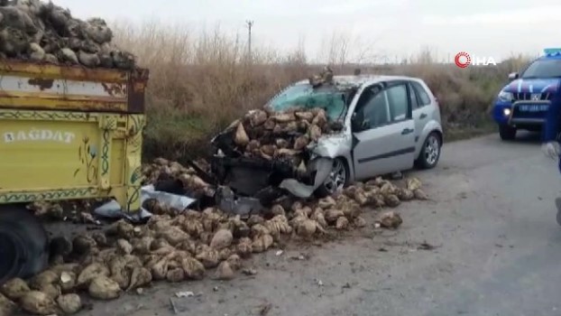 Aksaray’da otomobil pancar yüklü römorka çarptı: 1 ölü