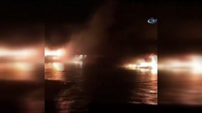 - İzmir Çeşme’de bir özel yat limanında çıkan yangının ardından, ilk teknede çıkan yangının başlama görüntüleri ortaya çıkarken, yatlardaki yakıtın Çeşme Körfezi’ne yayılmaması için temizlik çalışmaları da başlatıldı. Dün gece saatlerinde Çeşme ilçesinde, birçok ünlü ismin oturduğu özel bir sitenin limanında çıkan yangın ile ilgili soruşturma sürerken, yangının başladığı teknenin görüntüleri ortaya çıktı. Görüntüler kundaklama ihtimalini azalttı Olayın ardından teknelerin kundaklandığı iddia edilirken, ortaya çıkan görüntülerde ilk başta bir tekneden kıvılcım çıkarak teknenin alev aldığı görüldü.
