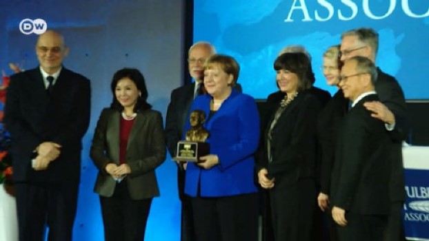 Almanya Başbakanı Angela Merkel’e Fulbright Uluslararası Anlayış Ödülü verildi. Berlin’de ödülünü alan Merkel’in, 2015 yılında göçmen akını yaşandığı sırada Avrupa sınırlarını açık tutma kararı törende övüldü. Dikkat çekici ve merhametli lider olarak tanımlandı.