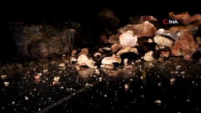 Heyelan anı kamerada Heyelan anı bölgede bulunan vatandaşların tarafından cep telefonu kamerasıyla kaydedildi. Görüntülerde tepeden kopan kaya ve toprak parçalarının büyük bir gürültüyle yola düşüş anı yer aldı.