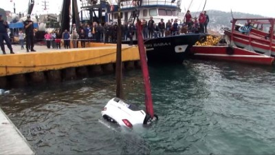 Ben de resim çektirecek zannettim. Önce bir taksi çağırdı. Taksi geldi. Taksi geldikten sonra arabayı boşa aldı. İtti tek başına. Araba denize uçtu. Ondan sonra bize öpücük salladı gitti. Taksiye bindi gitti" diyerek yaşananları anlattı. Çevredeki vatandaşların ihbarı üzerine olay yerine itfaiye ekipleri, sahil güvenlik ve polis ekipleri sevk edildi. Çevrede güvenlik önlemi alan ekipler, aracın çıkartılması için çalışma başlattı. Denize dalan dalgıçlar, araca halat bağladı. Ekipler uzun uğraşlar sonucunda aracı denizden çıkartarak çekiciye yükledi.