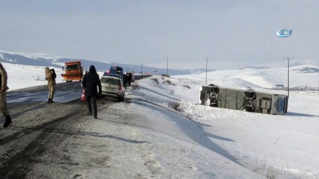 - Ardahan'da meydana gelen otobüs kazasında 4 kişi yaralandı. Alınan bilgiye göre, kaza bugün saat 09. 40 sıralarında Ardahan- Göle karayolunun 8. kilometresinde meydana geldi. Kadir Kanal idaresindeki 06 DR 4484 plakalı yolcu otobüsü, buzlu yolda kayarak şarampole devrildi. Kazada otobüs sürücüsü Kadir Kanal ile birlikte yolculardan 3 kişi yaralandı. Hayati tehlikeli olmayan yaralılar Ardahan Devlet Hastanesinde tedavi altına alındı. Kazayla ilgili soruşturma başlatıldı. (OY-AA)