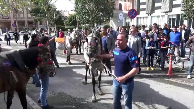 - At arabacıların eylemi - At arabacıların atlarıyla belediye binası önünde gelmesi - At arabacıların birbiriyle tartışması Şanlıurfa 'da at arabacıların eylemi - Arabalarının zabıta ekiplerince alındığını iddia eden at arabası sahipleri, belediye önünde duruma tepki gösterdiŞANLIURFA (AA) - Şanlıurfa 'da, arabalarının zabıta ekiplerince alındığını iddia eden at arabası sahipleri, olayı atlarıyla geldikleri belediye önünde protesto etti.Arabalarının zabıta ekiplerince alındığını iddia eden at arabası sahibi bir grup, atlarıyla Şanlıurfa Büyükşehir Belediyesine gelerek arabalarının iade edilmesini istedi.Polis ekiplerinin güvenlik önlemi almasının ardından gruptan 2 temsilci belediye yetkilileriyle görüştü. Gruptakiler, görüşmenin ardından dağıldı.Şehir merkezinde at arabası kullanılması bir süre önce yasaklanmıştı. ProtestoGüvenlik ÖnlemiZabıta