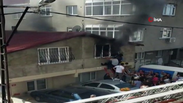 ( İSTANBUL )-Anne ve çocukları pencerelerden dışarı çıkarılarak kurtarıldı İSTANBUL