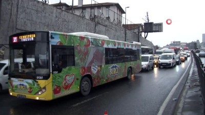 ( İSTANBUL )- Köprü girişinde otomobille çarpışan kamyonet devrilerek yan yattı- Kaza nedeniyle Karaköy girişleri bir süre trafiğe kapandı İSTANBUL
