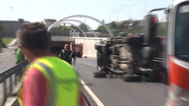 Avrasya Tüneli’nde kontrolden çıkan cip yan yattı