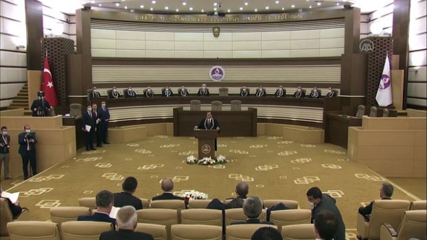 AYM Başkanı Arslan: "Irkçılık ve yabancı düşmanlığı, mevcut salgından çok daha tehlikelidir" - ANKARA - Anayasa Mahkemesi Başkanı Zühtü Arslan'ın kürsüye gelmesi - Anayasa Mahkemesi Başkanı Arslan'ın kürsüdeki konuşması - Salondaki katılımcılarANKARA - Anayasa Mahkemesi Başkanı Zühtü Arslan, Anayasa Mahkemesi üyeliğine seçilen Basri Bağcı'nın yemin töreninde konuştu. (1) Yemin Töreni