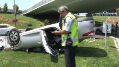 - Atatürk Havalimanı’ndan Havuzlu Kavşak istikametine seyir eden araç sürücüsü Cuma Ramadan, önünde ani bir şekilde şerit değiştiren araca çarparak takla attı. Kaza anından araç içerisinde bulunan 2’si çocuk 3 kişi, emniyet kemeri sayesinde kazayı yara almadan atlattı. Kaza, saat 11.30 sıralarında Atatürk Havalimanı önündeki kavşakta meydana geldi. İddiaya göre iki çocuğu ile birlikte Atatürk Havalimanı’ndan çıkan sürücüsü Cuma Ramadan, önünde aniden şerit değiştiren Salih B. yönetimindeki otomobile çarptı. Direksiyon hakimiyetini kaybeden Ramadan, ardından yön levhasına çarparak takla attı. Sürücü Cuma Ramadan ve iki çocuğu, emniyet kemerlerinin takılı olması sayesinde kazayı burnu bile kanamadan atlattı. “Emniyet kemeri sayesinde burunları bile kanamadı” Kaza sonrası olay yerine 112 sağlık ve polis ekipleri sevk edildi. Olay yerine gelen 112 sağlık ekipleri, ani manevra yaparak kazaya sebebiyet veren ve hafif şekilde yaralanan araç sürücüsü Salih B.,’yi tedavi altına aldı. Cuma Ramadan ve iki çocuğunun emniyet kemerlerinin takılı olması sayesinde kazayı burnu bile kanamadan atlattıkları görüldü.