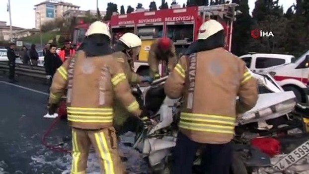 - Bakırköy E-5’te aracı yolda bozulan araç sağ şeritte durmasıyla bu esnada seyir halinde olan arkadan gelen kamyonet öndeki aracı fark edemeyince araca arkadan çarptı. Çarpmanın etkisiyle bariyerlere sıkışan sürücü olay yerinde feci şekilde hayatını kaybetti. Kaza sabah saatlerinde Bakırköy E-5 Avcılar istikametinde yaşandı. Edinilen bilgilere göre Hakkı Öztürk, 34 AB 5997 plakalı aracı arıza yapınca sağ şeritte durmak zorunda kaldı. Bu sırada arkadan gelen 34 CKR 450 plakalı kamyonet, Öztürk’ün aracına çarptı. Kazada araç içerisinde sıkışan Öztürk feci şekilde hayatını kaybetti. İhbar üzerine olay yerine çok sayıda itfaiye ve polis ekibi sevk edildi. Olay yerine gelen itfaiye ekipleri araçlarda yaşanabilecek bir yanma ihtimaline karşı köpük uygulaması yaptı. Çarpmanın etkisiyle bariyerlere sıkışan araçtaki sürücü Öztürk’ü çıkarmak için çalışma başlatan itfaiye ekipleri, uzun süre çaba sarf etti. Aracın üst bölgesini kesen ekipler, sürücüyü çıkartarak sağlık ekiplerine teslim etti. Ancak sağlık ekiplerinin incelemesinde sürücü Öztürk’ün hayatını kaybettiği belirlendi. Cenaze otopsi yapılmak üzere Adli Tıp Kurumu’na gönderildi. (AY-ÖFA