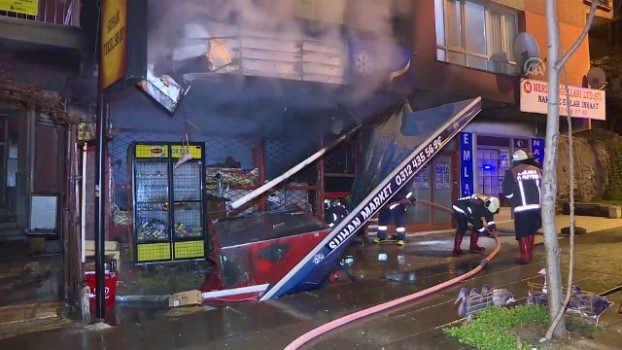 - - Yangın çıkan iş yerinden detaylar - İtfaiye ekiplerinin yangına müdahalesi - Vatandaşlardan detaylar - Çankaya'da üç katlı bir binanın altındaki markette henüz belirlenemeyen nedenle patlama meydana geldi - Patlama sonrası çıkan yangında market alevler içinde kalırken binada oturanlar yoğun duman nedeniyle tahliye edildi - Yangın, itfaiye ekiplerinin müdahalesiyle kısa sürede kontrol altına alınarak söndürüldüANKARA (AA) - Ankara 'da bir markette meydana gelen patlama sonrası yangın çıktı.Çankaya'daki Bülbülderesi Caddesi'nde üç katlı bir binanın altındaki Bülent Ülker'e ait markette henüz belirlenemeyen nedenle patlama oldu.Patlamanın şiddetiyle marketin kırılan camları yola savrulurken iş yeri önündeki su ve içeceklerin bulunduğu buzdolapları devrildi.Marketin bulunduğu binada oturanlar ise hissettikleri şiddetli sarsıntıyla büyük panik yaşadı.Marketin güvenlik alarmının çalması üzerine dükkana gelen mahalle bekçileri, alevleri görerek itfaiyeye haber verdi.Patlama sonrası çıkan yangında market alevler içinde kalırken binada oturanlar yoğun duman nedeniyle tahliye edildi.İtfaiye ekipleri üst katlara kadar ulaşan alevlere müdahale etti, yangın kısa sürede kontrol altına alınarak söndürüldü. - "Marketi kapattıktan 5 dakika sonra telefon geldi"İş yeri sahibi Bülent Ülker, iş yerini kapattıktan sonra eve gitmek üzere aracına bindiğini ve 5 dakika sonra güvenlik şirketinin kendisini telefonla arayarak alarmı haber verdiğini söyledi.
