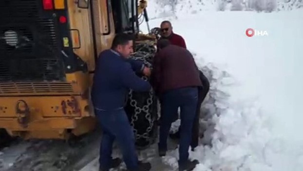 -Karın içinde mahsur kalan aracı iş makinesı kurtarması