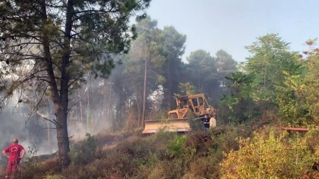 - Ekiplerin yangına müdahale görüntüleri - Helikopterin söndürme çalışmaları - Yangından etkilenen bölgelerden görüntülerDETAYLAR EKLENDİİSTANBUL (AA) - Beykoz'daki ormanlık alanda çıkan yangına havadan ve karadan müdahale ediliyor.Alınan bilgiye göre, Anadolu Hisarı Bent Yolu Caddesi'ndeki ormanlık alanda henüz belirlenemeyen nedenle yangın çıktı.Durumun bildirilmesi üzerine olay yerine Kavacık, Çengelköy ve Çavuşbaşı'ndan sevk edilen itfaiye ekipleri, Orman Bölge Müdürlüğü ekipleriyle yangına müdahale ediyor.Öte yandan, bölgeye gönderilen yangın söndürme helikopteri de havadan desteğini sürdürüyor.Bu arada, itfaiye araçlarının erişemediği bölgelerde yol açılması için alana iş makineleri de getirildi. Ekiplerin müdahalesi sayesinde evlere sıçraması önlenen ormanlık alandaki yangını söndürme çalışmaları devam ediyor. BildOrmanlıHelikopterYangına Müdahale