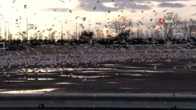 Binlerce Martı Rüzgar Nedeniyle Otoparka Sığındı