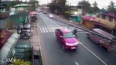 - Filipinler’de yolun karşısına geçmek isteyen dalgın adam, hızla gelen cipi fark edince panikledi. Filipinler’de yolun karşısına geçmek isteyen adam cipe çarptı. Cip de hızını artırıp manevra yapınca ortaya ilginç bir kaza çıktı. Yaya, cipe çarpınca yaralandı. Şahıs, olay yerine çağrılan ambulansla hastaneye kaldırıldı.