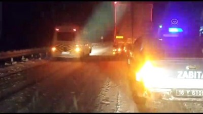 - Bursa - Ankara kara yolunun ulaşıma kapanması - Yolda bekleyen araçlardan detaylar - Yolda kalan araç sürücülerine yiyecek ve içecek dağıtılmasıBURSA (AA) - Bursa - Ankara kara yolunda bir tırın kayması sonucu yol, tek yönlü ulaşıma kapandı.Alınan bilgiye göre, Bursa - Ankara kara yolu üzeri Mezitler mevkisinde bir tırın kayması sonucu Ankara istikametinde araç trafiği sağlanamıyor.Kaza nedeniyle bölgede uzun araç kuyruğu oluştu.Karayolları ekipleri, yolu açmak için çalışmalarını sürdürüyor.