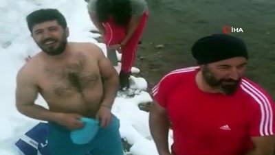 -Buz gibi soğuk suya girerek yüzen üç arkadaş