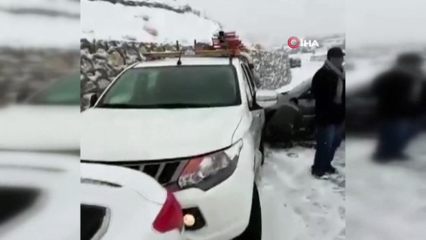 Buz pistine dönen yolda 20’ye yakın araç birbirine girdi