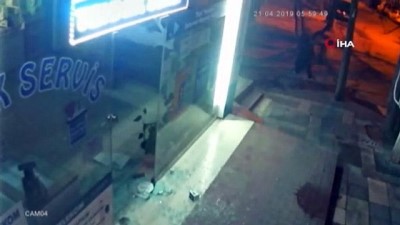 Cam kapıyı tuzla buz edip bir dakikada dükkanı boşaltan hırsızlar kamerada