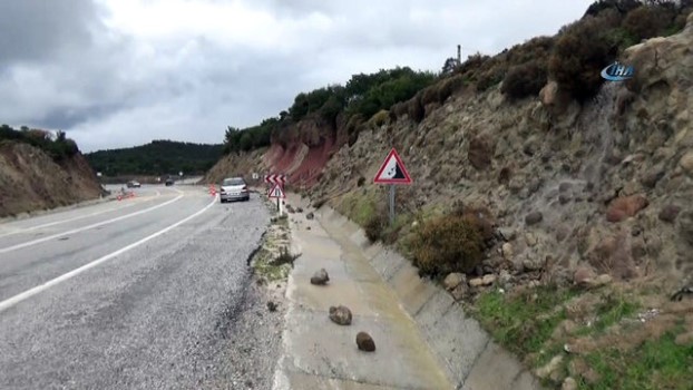 -Ayvacık-Behramkale karayolunda çökmeden görüntüler